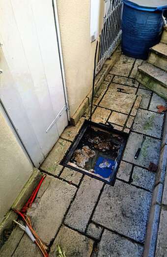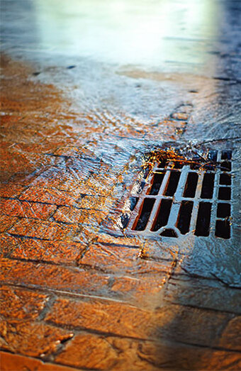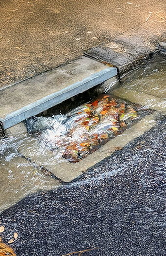 Professional unblocking of surface drains such as channel grates and strip drains filled with leaves, mud, or garden waste causing pooling water.